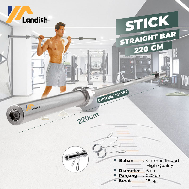 Stick Straight Bar 220cm/150cm Stick Barbell Crossfit Olympia Stik Olympic Lubang 5cm panjang Gym Fitness
