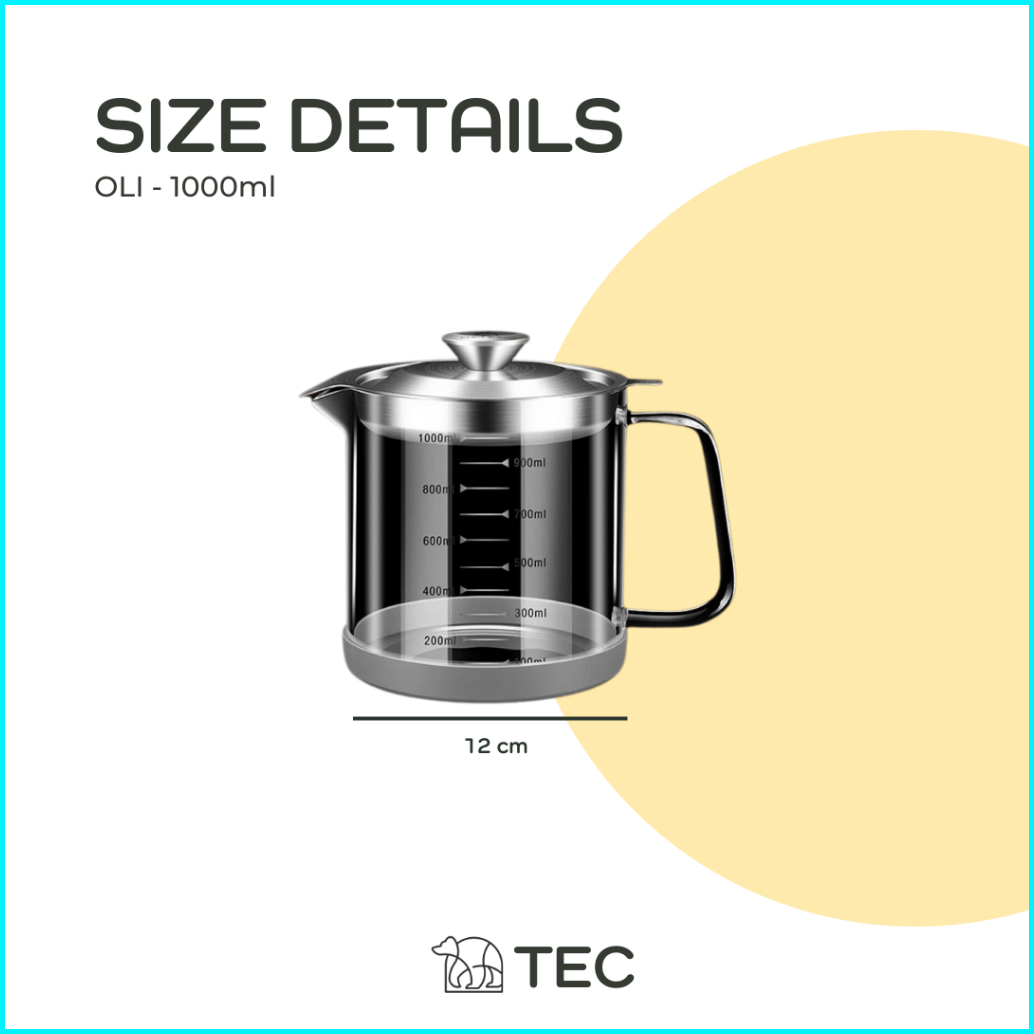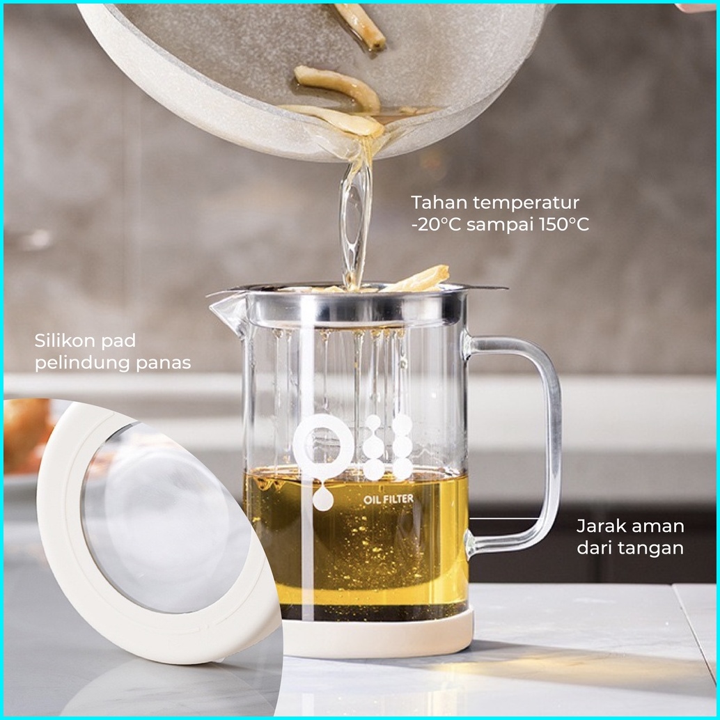 Botol Minyak Dapur Estetik Tec Oli Oil Glass Botol Kaca Tempat Penyaring Minyak Goreng Filter Oil Dengan Saringan Wadah