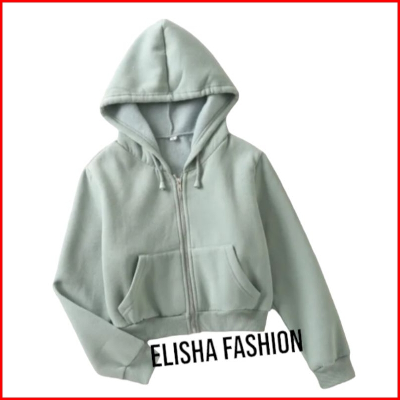 Jaket Sweater Crop Hoodie Wanita Kekinian Plecce
