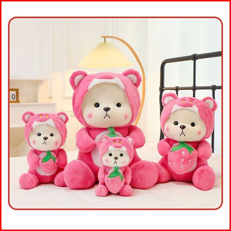 Boneka Teddy Bear Costum Lotso Hoodie Strawberry Hadiah Anak Ulang Tahun Kado Viral