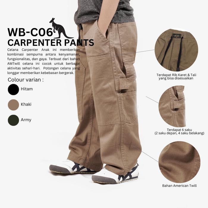 Wellboy Celana Carpenter Anak Laki Laki Skena Pinggang Karet - Carpenter Pants Celana Gombrong Anak Fashion - Khaki, M