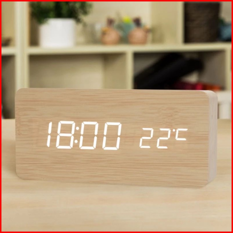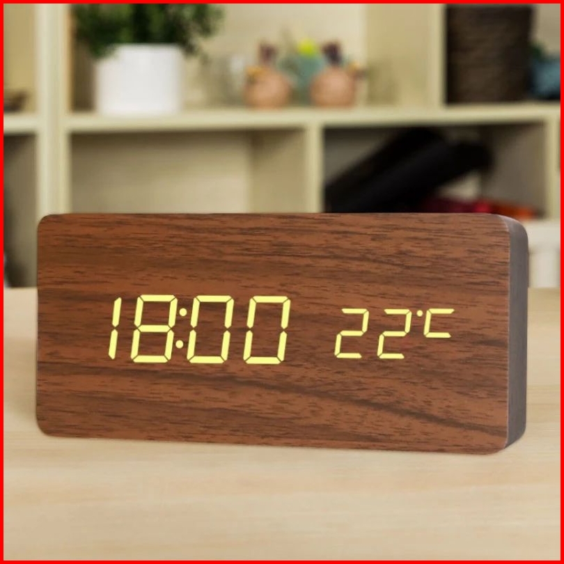 Jam Meja Kayu Digital Led Jam Estetik Suhu Digital Wood Smart Alarm Estetik Jam Weker Bunyi Alarm Di Tepuk Tangan Langsu