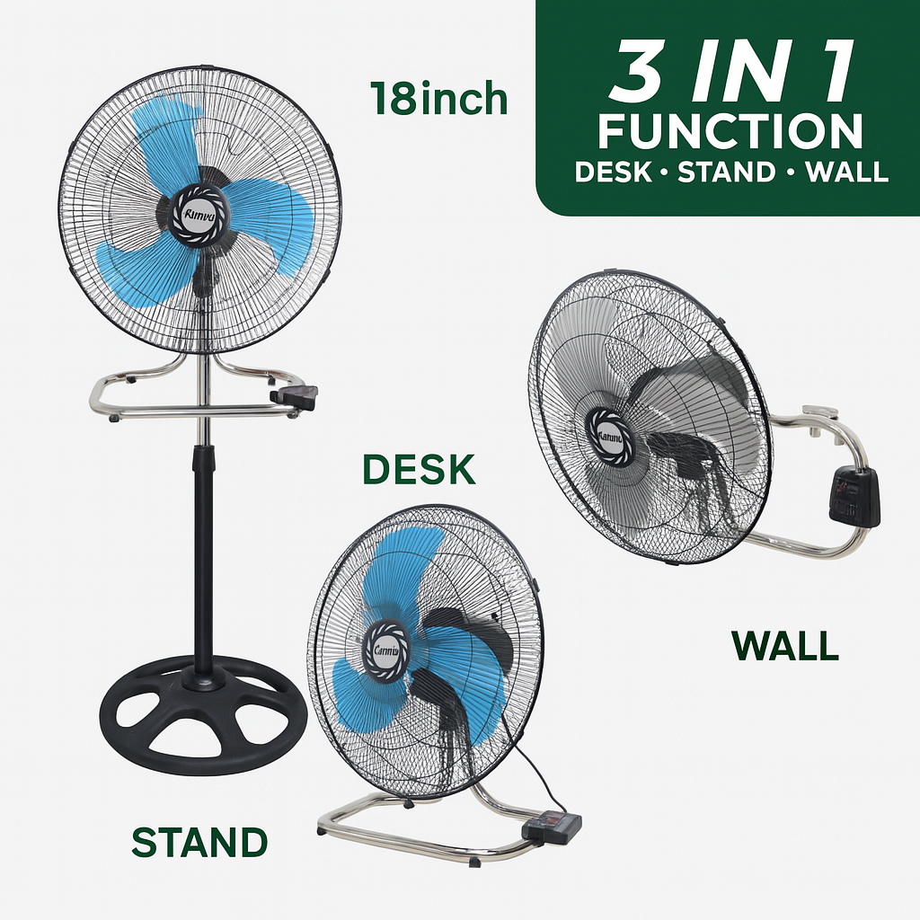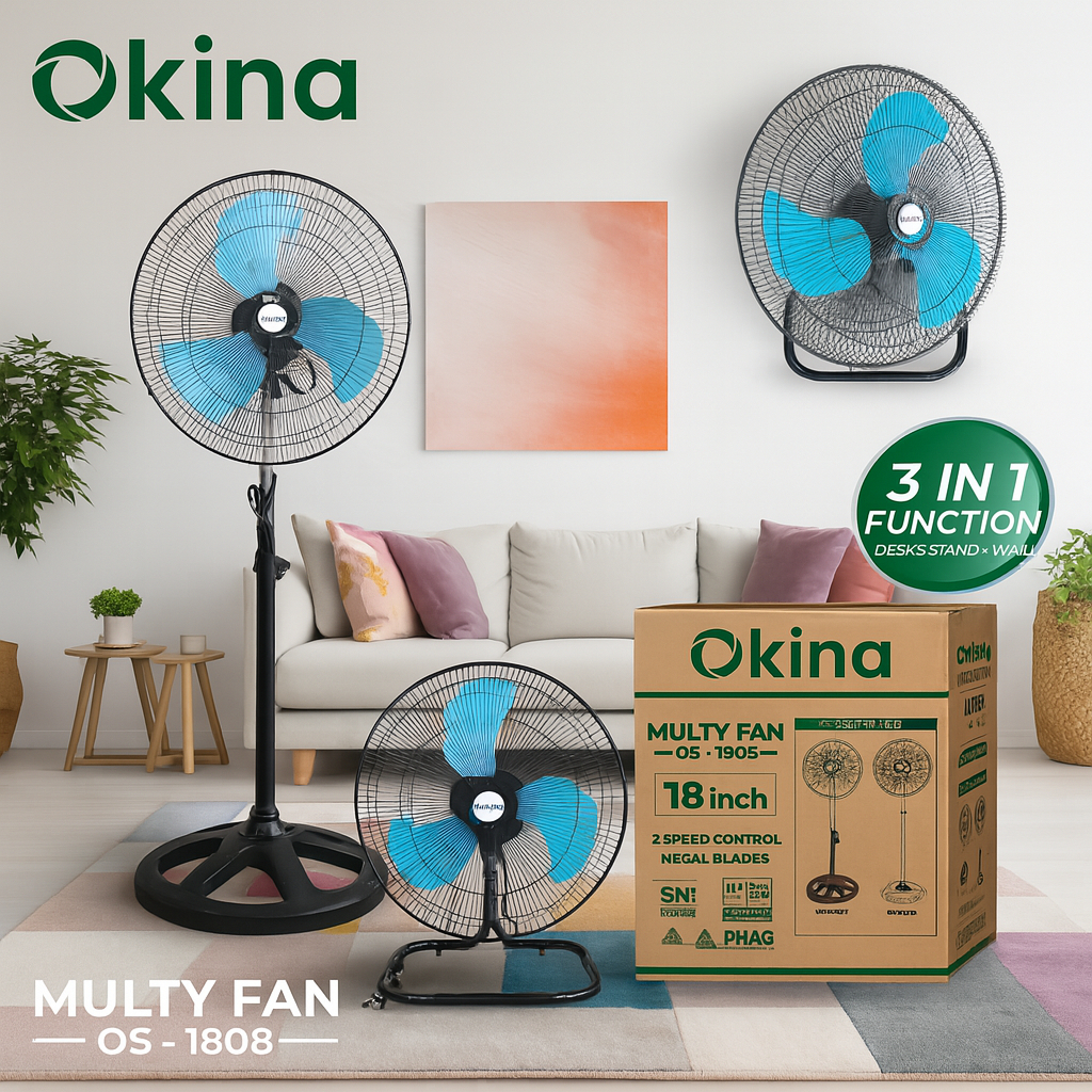 KIPAS ANGIN TORNADO BERDIRI MEJA DINDING 3IN1 3 IN 1 BESI 18 INCH 18" MIYOSHI BESI INDUSTRIAL MURAH