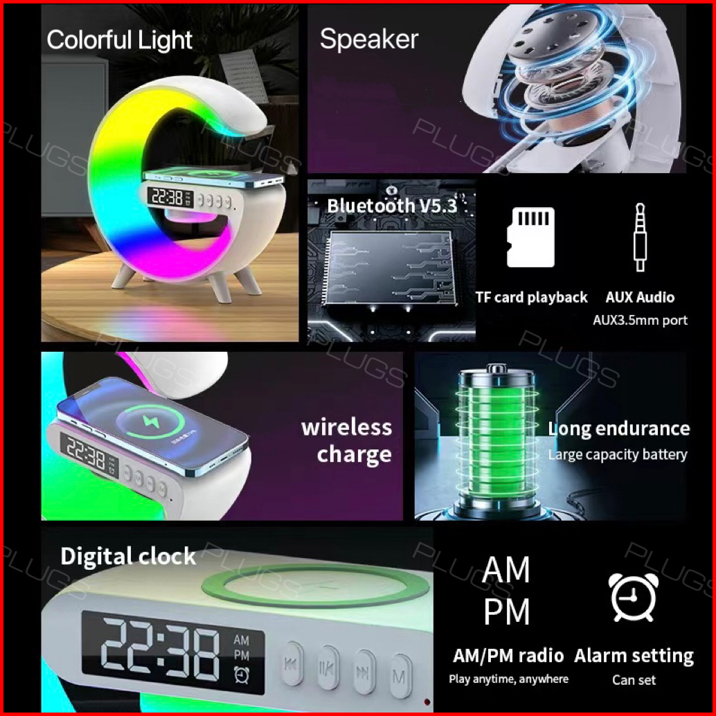 Plugs Bluetooth Speaker With Wireless Charging Smart Rgb Speaker 3w Lampu Tidur Alarm
