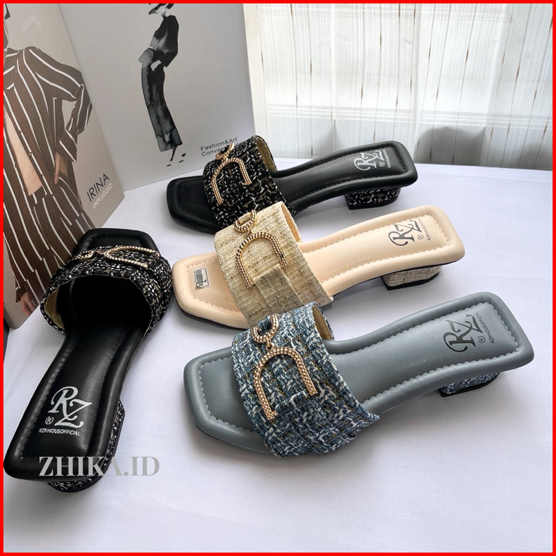 Nimue Sandal Wanita Heels 3cm Sendal Cewek Bahan Tweed Lucu Korean Style-nimue