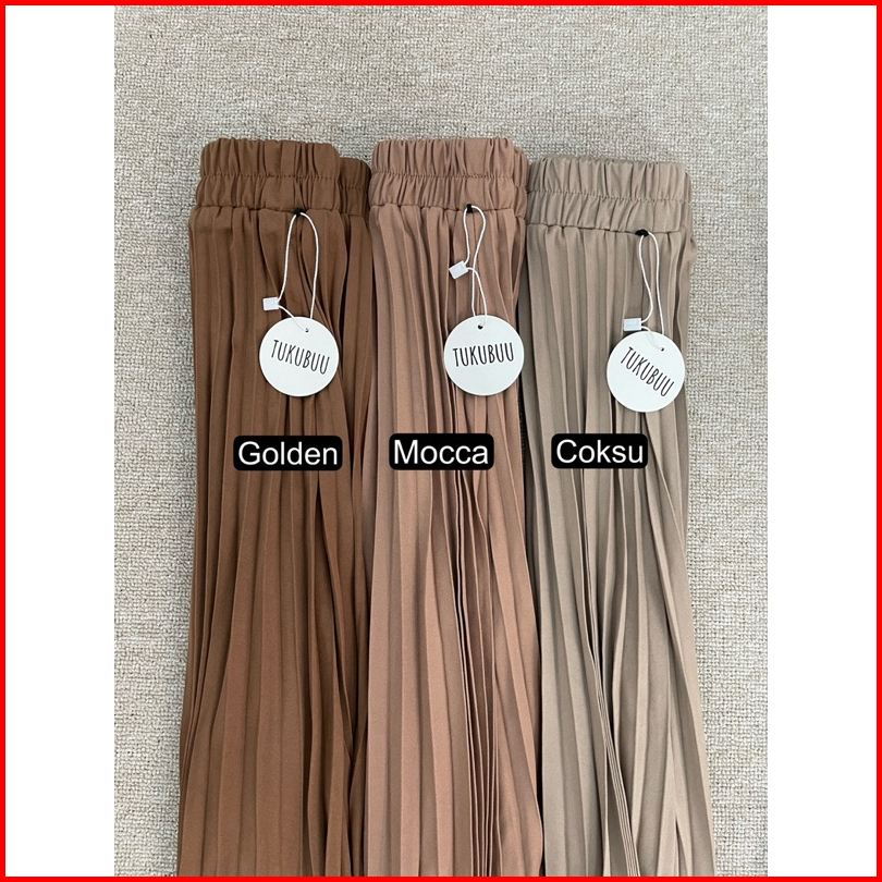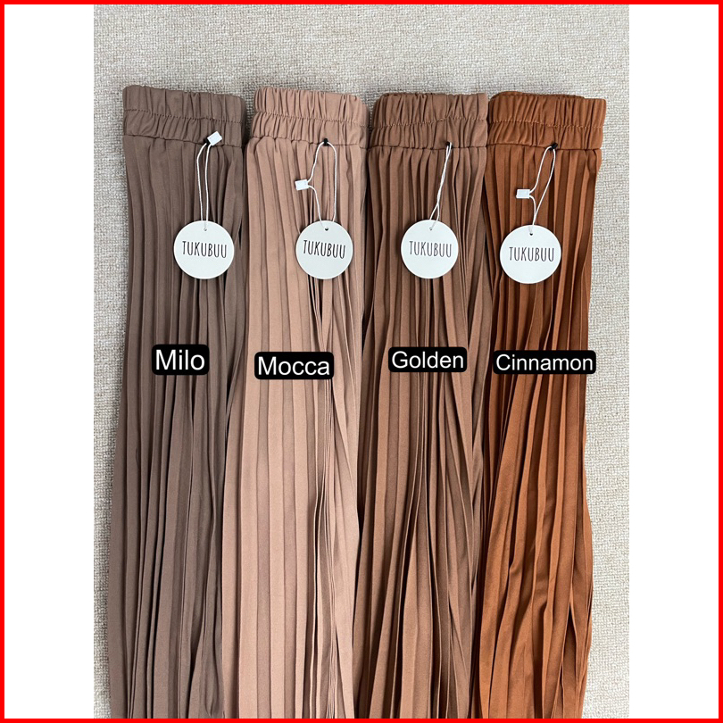 Hitam, Putih bersih, Broken white, Ash grey, Abu Tua, Coklat pramuka, Milo, Golden, Cinnamon, Coksu, Mocca, Milktea, Thaitea, Taupe, Cream, Almond, Khaki, Maroon, merah cabe, Bata, Baby pink, Salmon, Magenta, Violet, Ungu pastel, Hijau botol, Hijau turquise, Sage, Lemon, Olive, Navy, Biru turquise, Denim, Aqua, Baby blue, Smoke