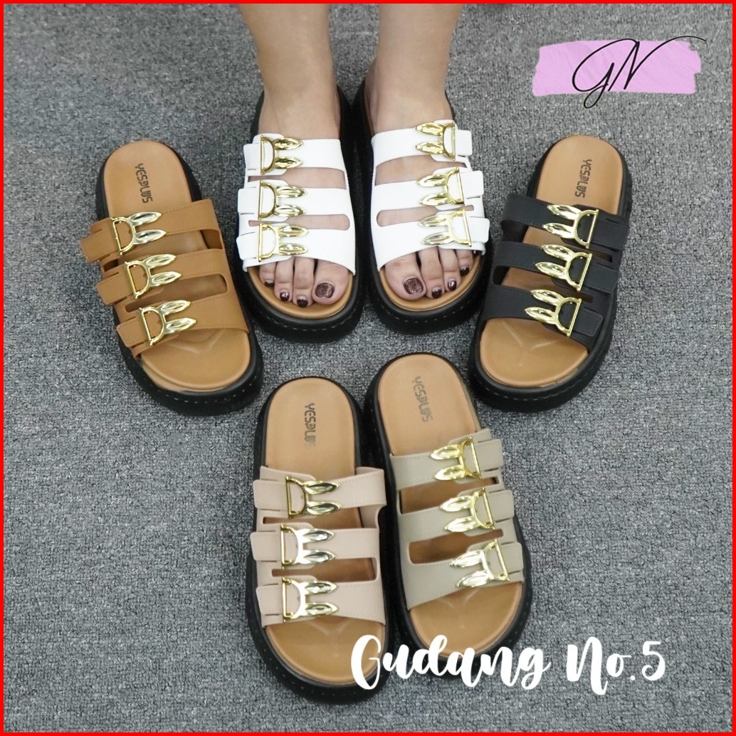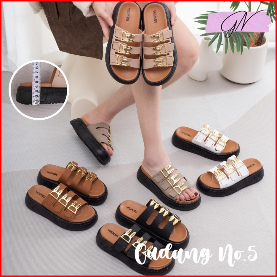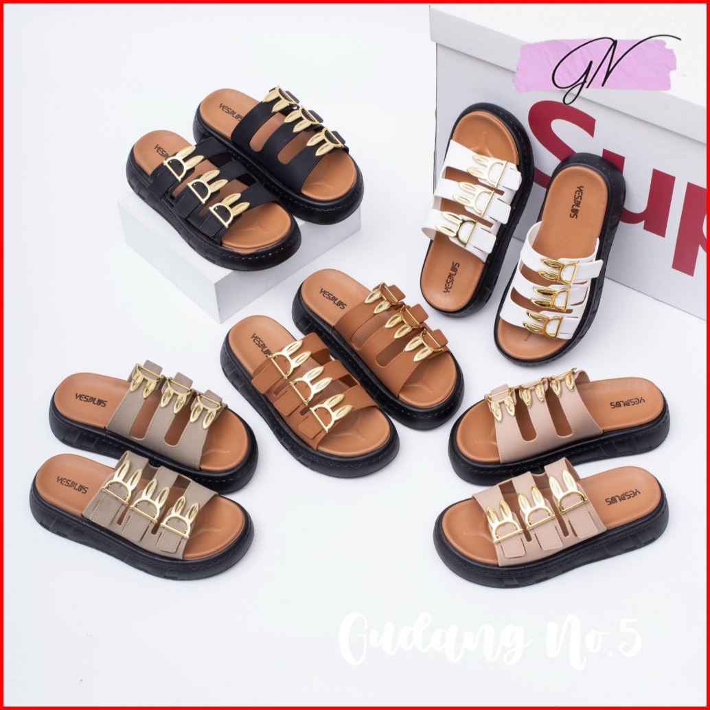 Gn-v513 Sandal Selop Flat Sandal Jelly Wanita Terbaru Tali Gesper Kelinci Ban 3 Import Pcu