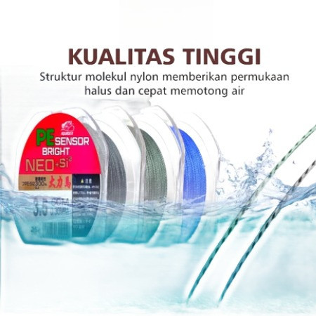HIUU Tali Pancing 4X 50m Senar Pancing PE Sensor Bright NEO+si 3 Warna Jepang Senar Pancing 4X 50m Super Kuat & Tahan Ba