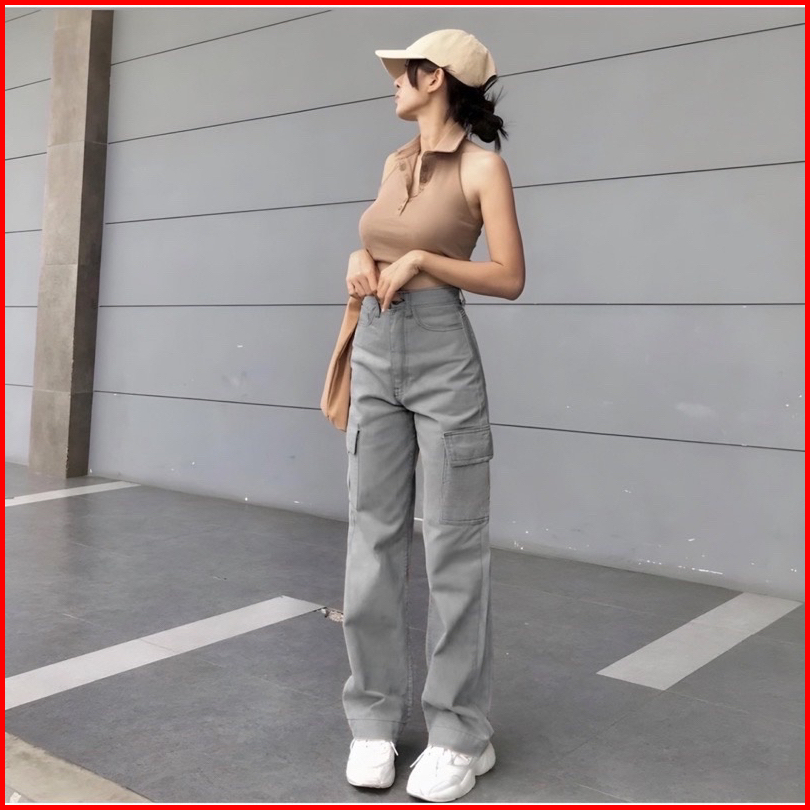 Celana Highwaist Cargo Jeans Wanita Voll 2