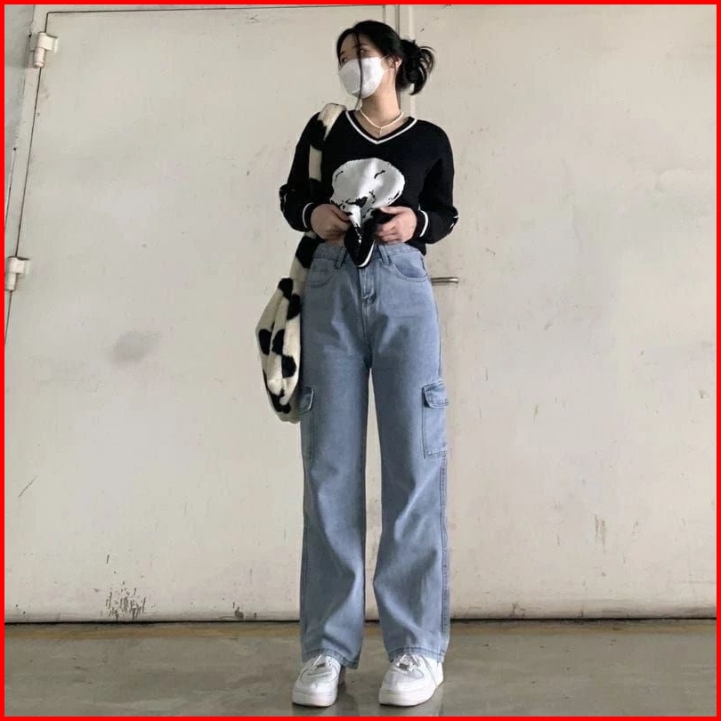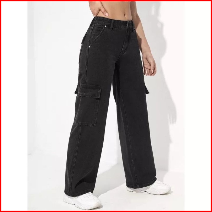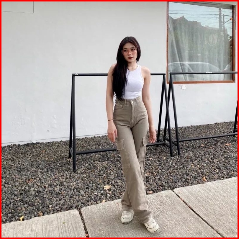 Yma Fashion - Celana Jeans Cargo Wanita - Hightwaist Celana Jeans Cargo