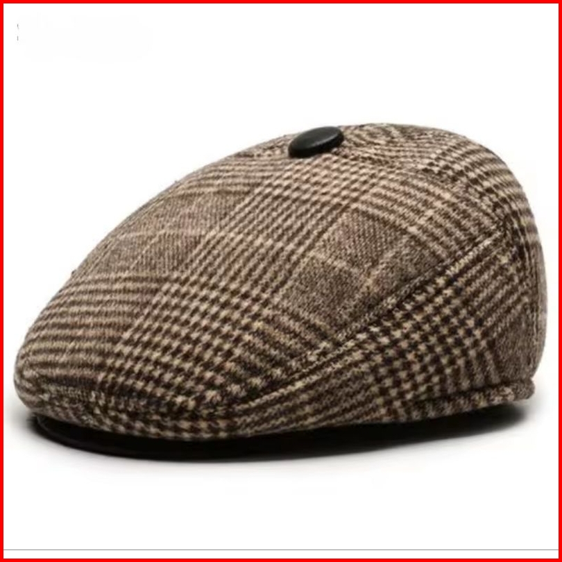 Topi Baret Pria Topi Golf Topi Painter Hat Tebal Motif Kancing