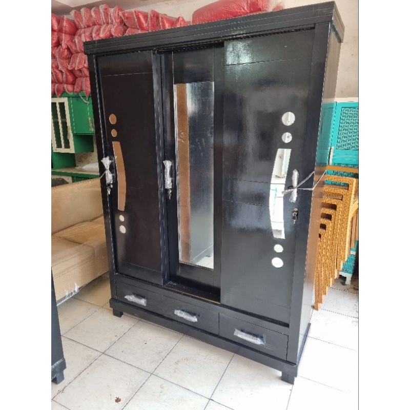 LEMARI KAYU 3 PINTU Lemari baju pakaian kayu 3 pintu sliding LEMARI KAYU PINTU GESER MURAH BERKUALITAS
