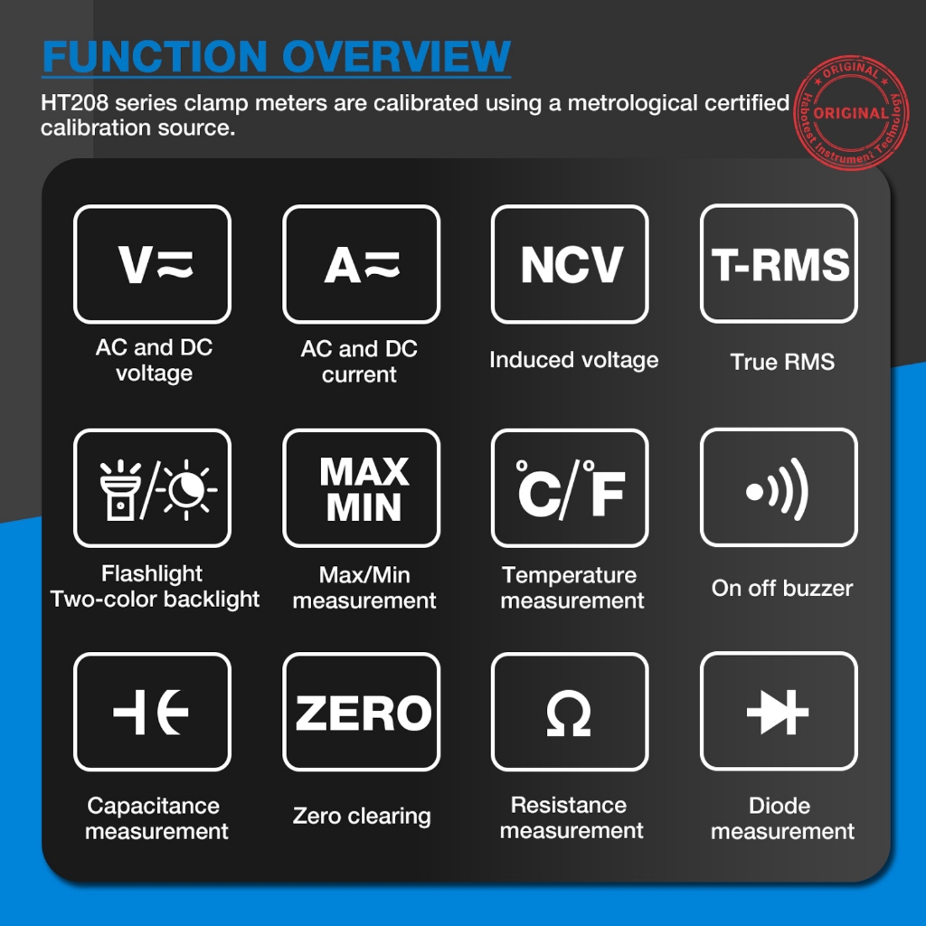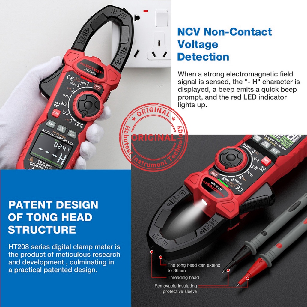 HABOTEST HT208D Tang Ampere AC DC Current Zero Line Meteran Klem Digital True-RMS NCV Multimeter