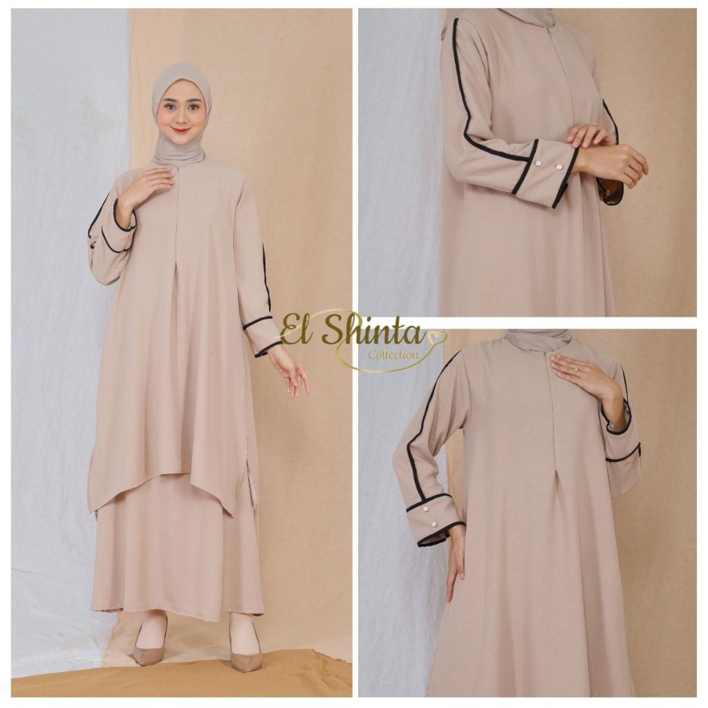 Anahira Set Rok Tunik syar'i Muslim Wanita One Set Tunik Melayu Crinkle Airflow Size M L XL XXL