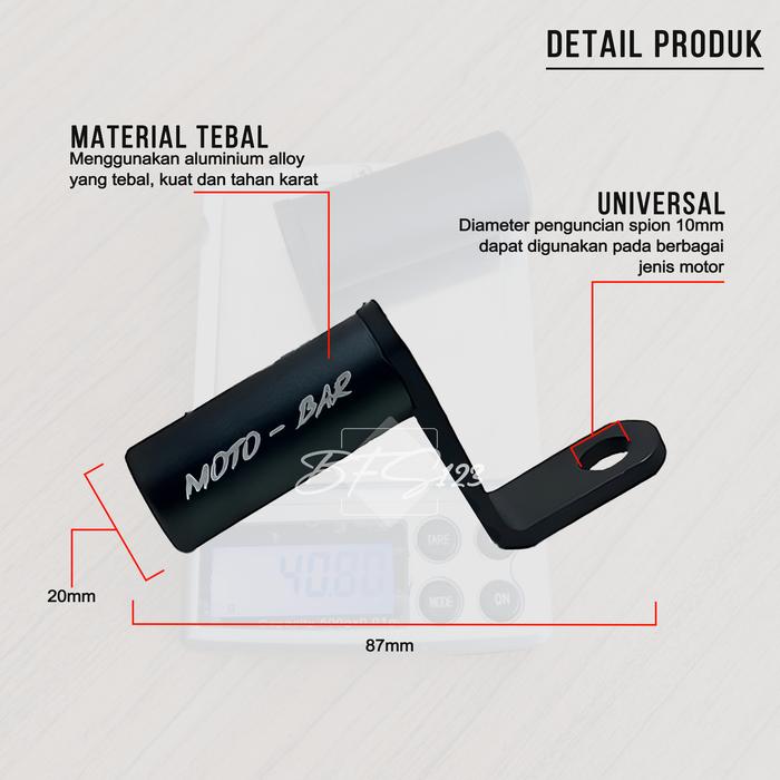 PALING DICARI ! BRACKET SPION MOTOR LAMPU SENTER HOLDER HP ALUMINIUM ALOY PONSEL - BRACKET SPION V1, HITAM TERMURAH