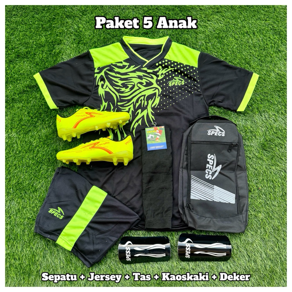 Paket 5 Set Sepatu Sepakbola Anak Laki Laki Size 33-37 Paket Komplit Sepatu Bola Junior/Anak TK SD SMP Sepatu Sepak Bola