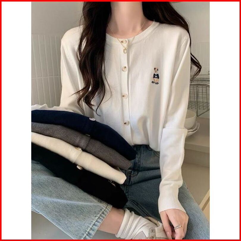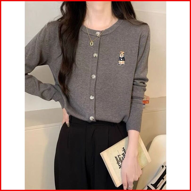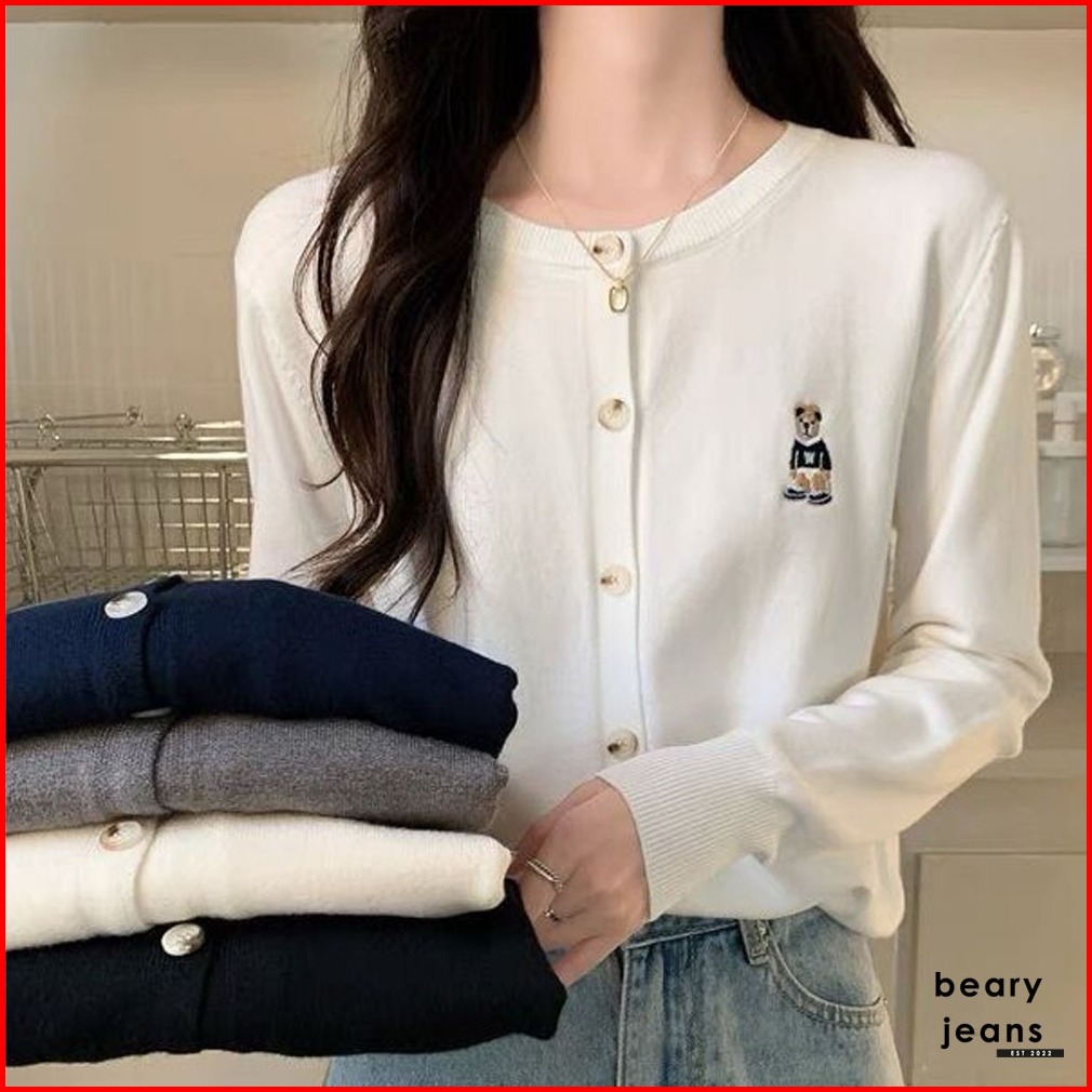 Beary Jeans Bj181 Korean Style Bear Cardigan Knitted Sweaters Women Kardigan Wanita Motif Beruang Long Sleeve Import