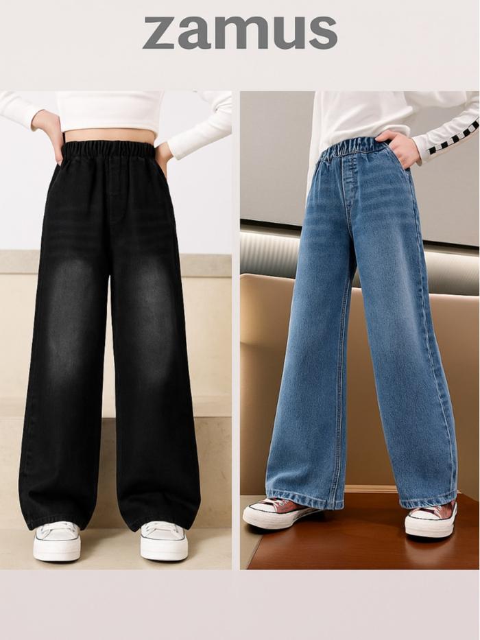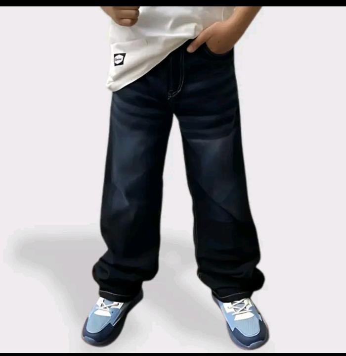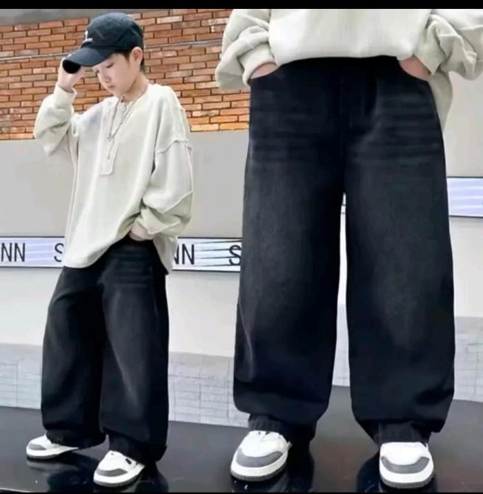 Zamus Celana Skena Panjang Anak Gombrong Cowok Cewek Usia 7-13 Tahun Bahan Jeans Berkualitas Fashion - Hitam Wisker, 24