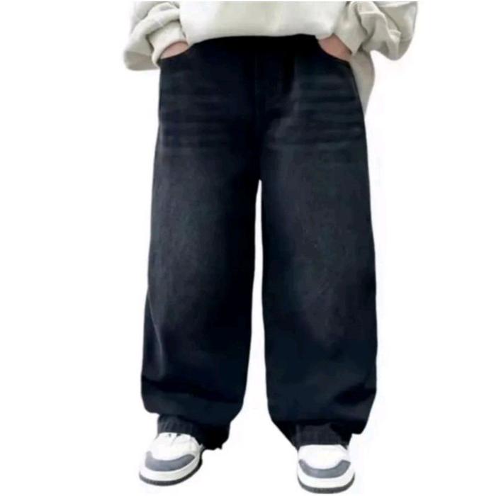 Unisex Celana Skena Jeans Cewek Cowok Anak Remaja Umur 8 Sampai 13 Tahun Gombrong Pinggang Karet Elastis Fashion - Hitam