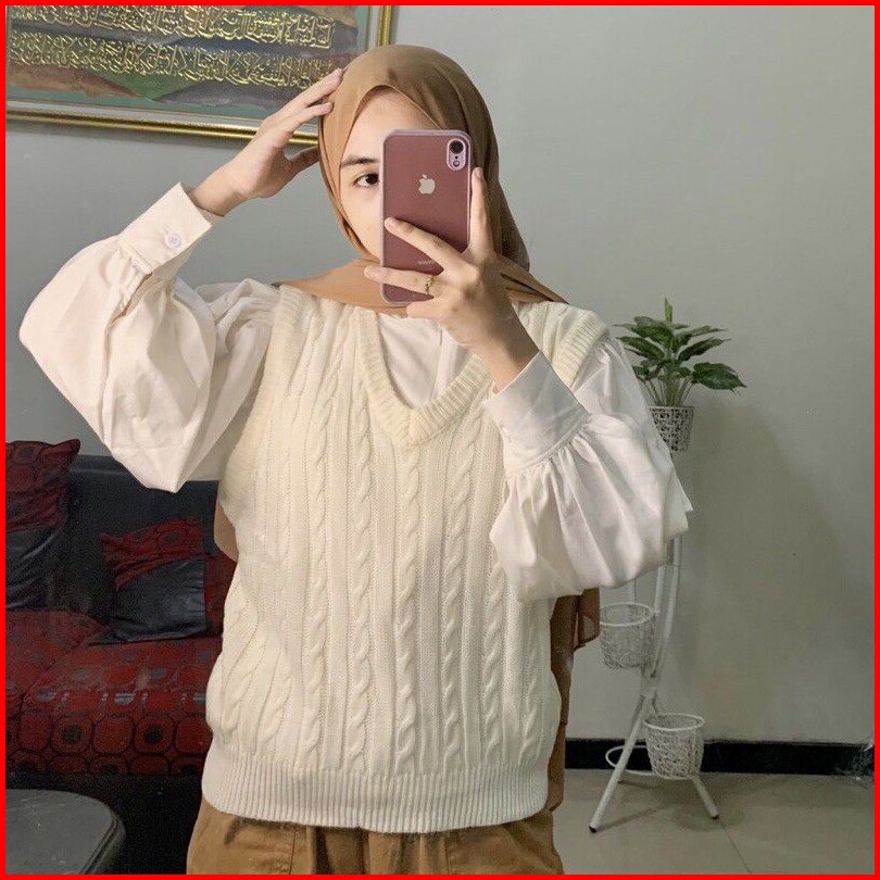 Rosita Cable Knit Sweater Outer Vest Rompi Rajut Street Style Tanpa Lengan
