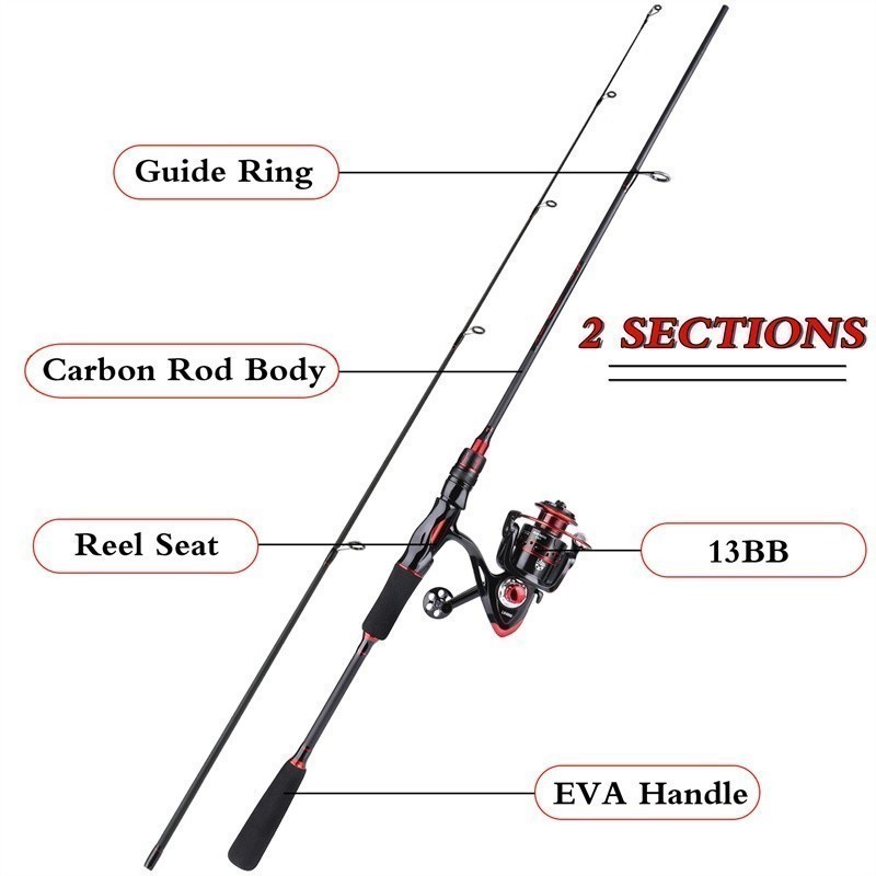 Sougayilang joran pancing 1.8m/2.1m 2 bagian pancing reel 2000 3000 4000 5000 6000 7000 joran spining reel pancing panci