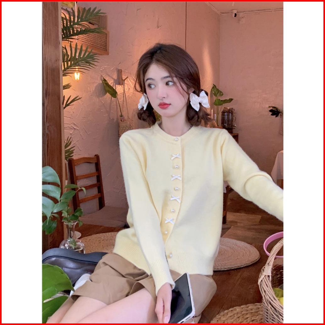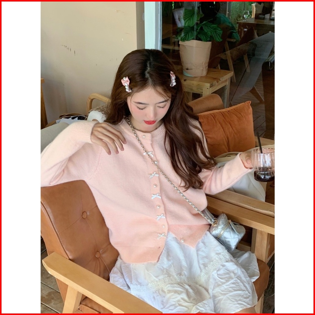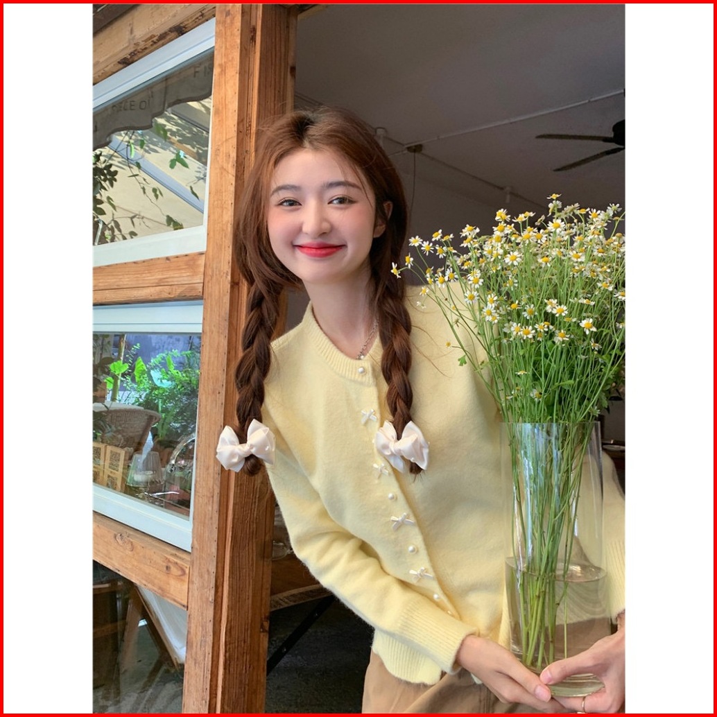 Monica Cardigan Wol Rajut Korean Style Pita Imut Ribbon Girly Coquette