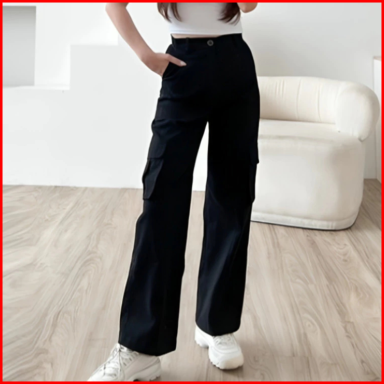 Rora Cargo Pants - Celana Cargo Wanita Katun Twill Stretch Highwaist Loose Korean Jumbo