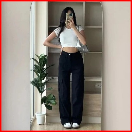 Celana Jeans Wanita Cewek Cewe Cargo Losse Kantong Samping Premium Jeans Cargo Korean Style Kekinian