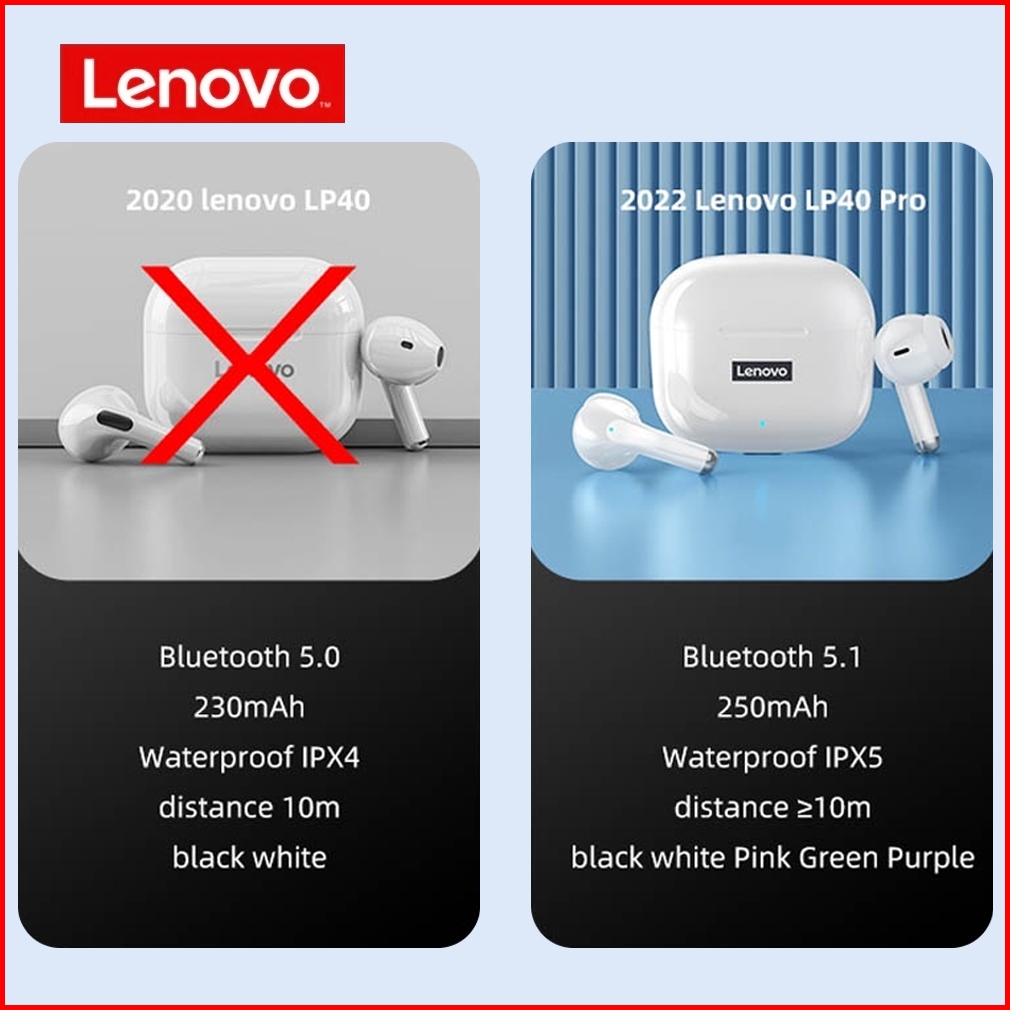 Lenovo Lp40 Pro Tws Bluetooth Earphone With Mic Mini Earbuds Noise Reduction Bluetooth Headphone For Ios Android