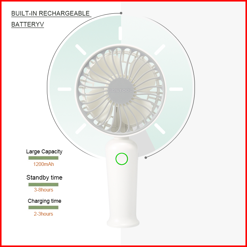 Bestool Kipas Angin Mini Portable Rechargeable Kipas Mini Fan 3-speed Adjustment Kipas Lipat Genggam