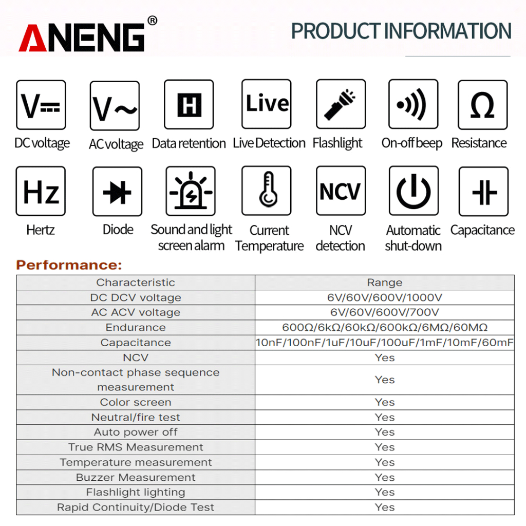 Aneng A3007 Digital Multimeter Voltage Tester Pen Original