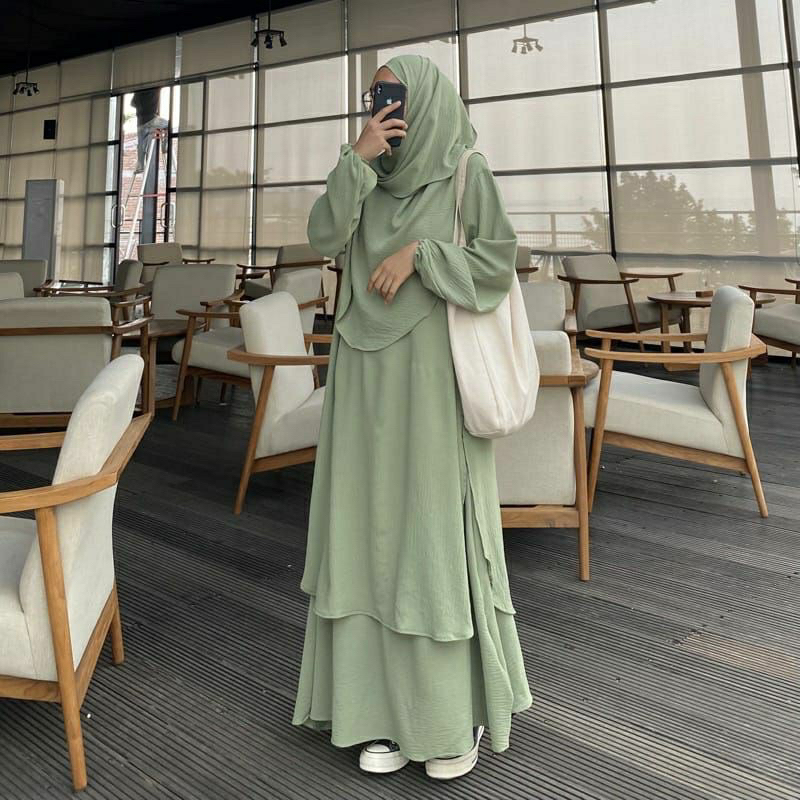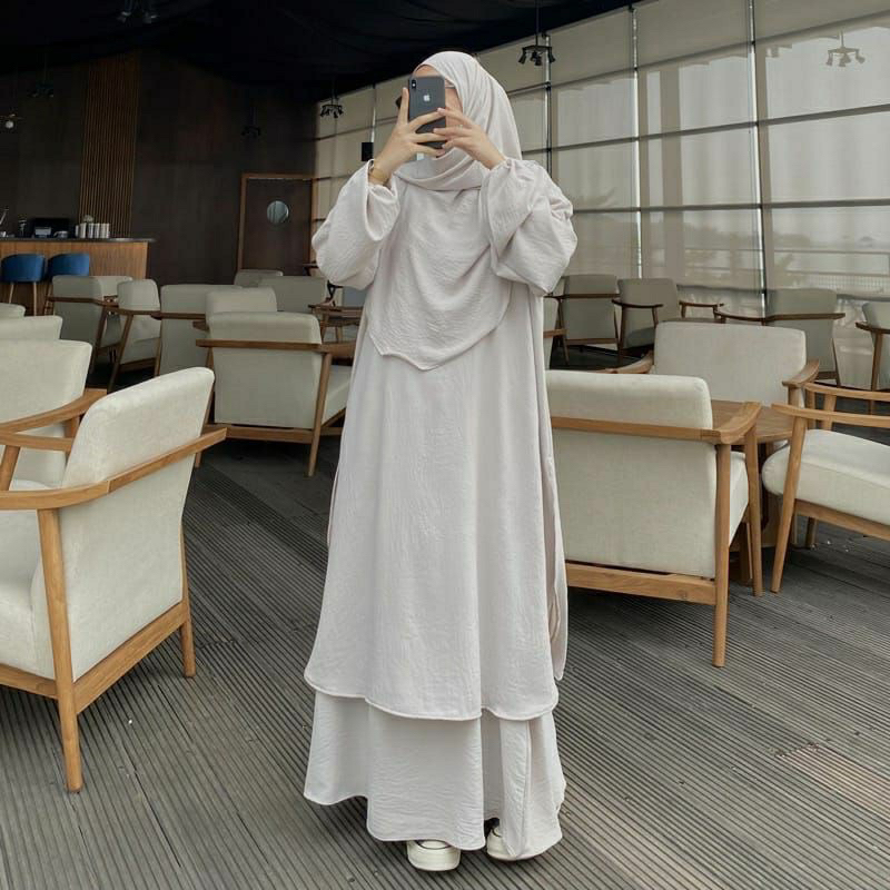 Hameda One Set | Setelan Wanita Rok Dan Tunik Terbaru Bahan Crincle Airplow Busui Size L,XL,XXL,Jumbo Viral Bestseller