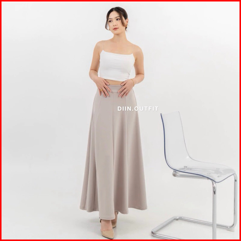 Audy Skirt Rok Korean Style Loose - Rok Flare Wanita Basic Polos - Rok Kerja Formal Kantor Span Panjang A Line Jumbo Pay