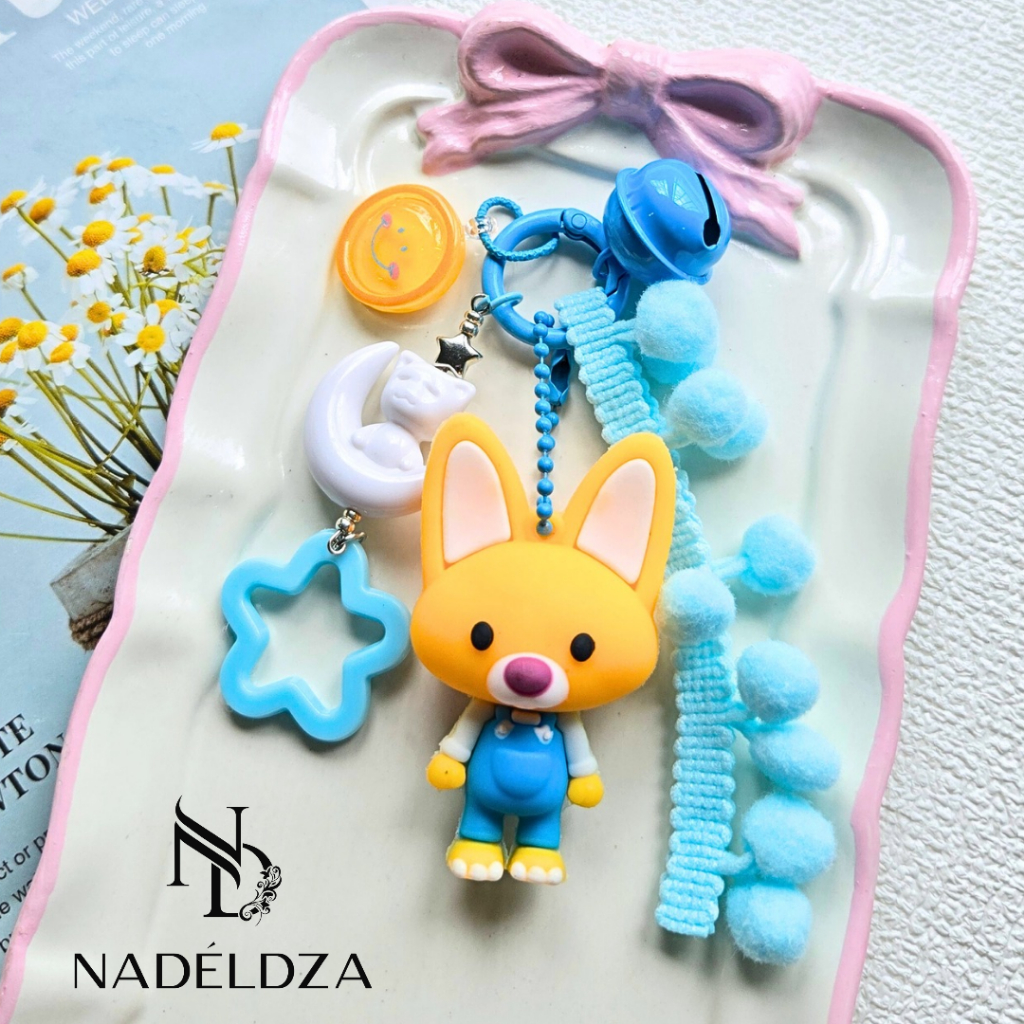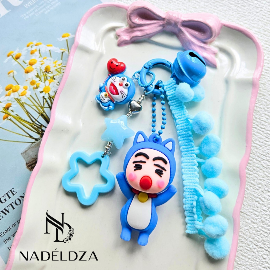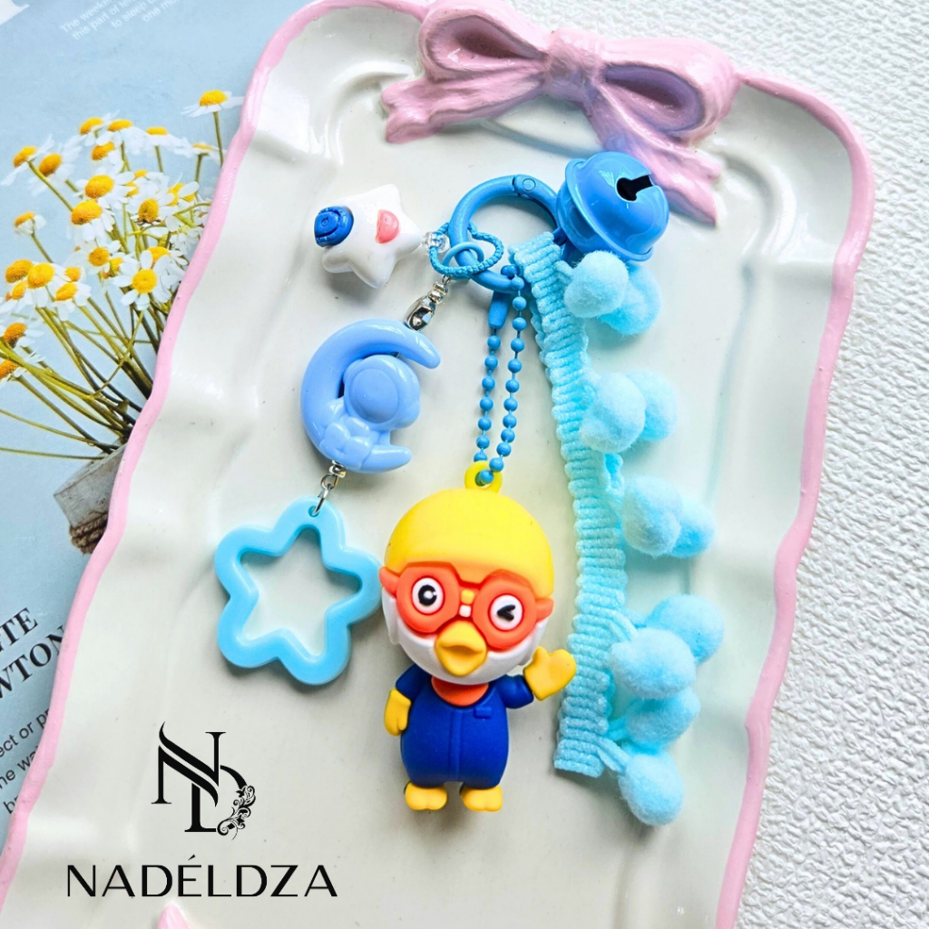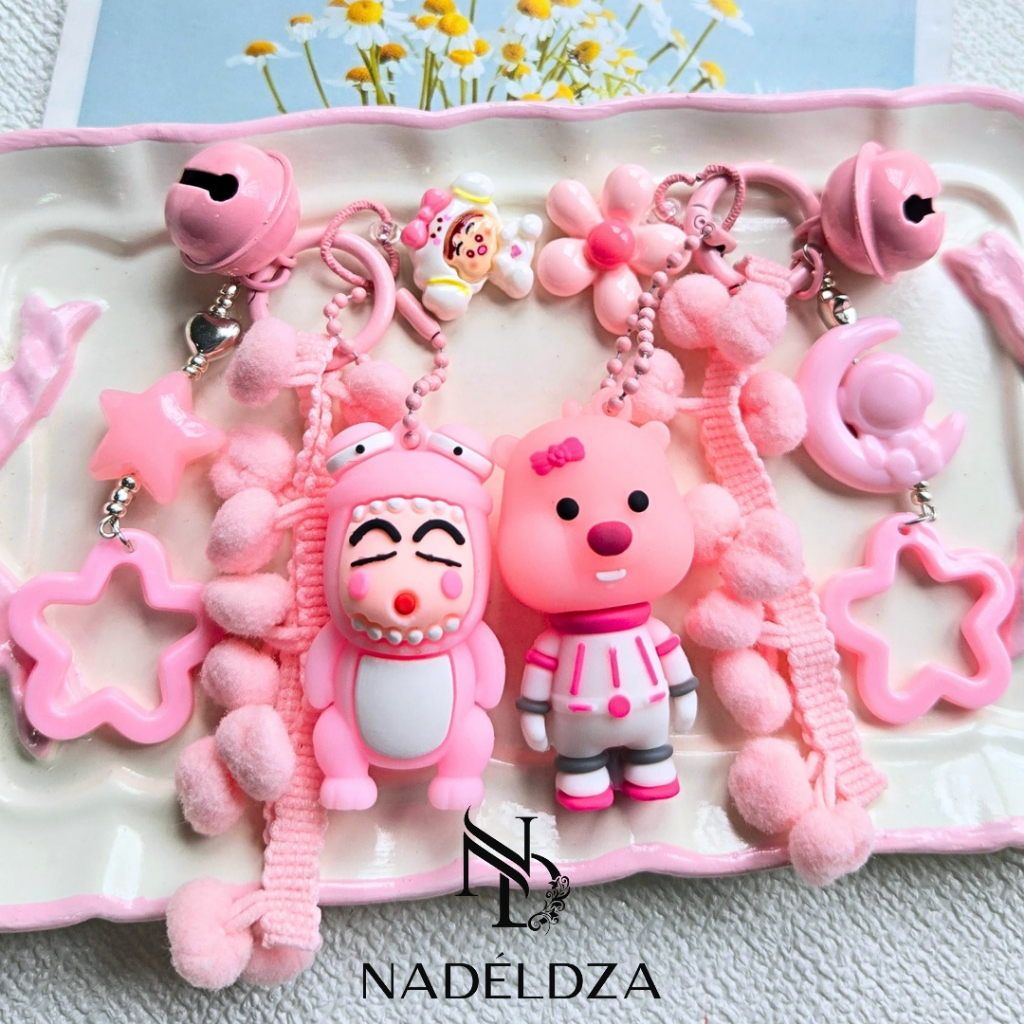 Nadeldza Bag Charm Keychain Pompom Karakter Sinchan Pororo Loopy Bunyi Lonceng/ Gantungan Tas Karakter Sinchan Lucu