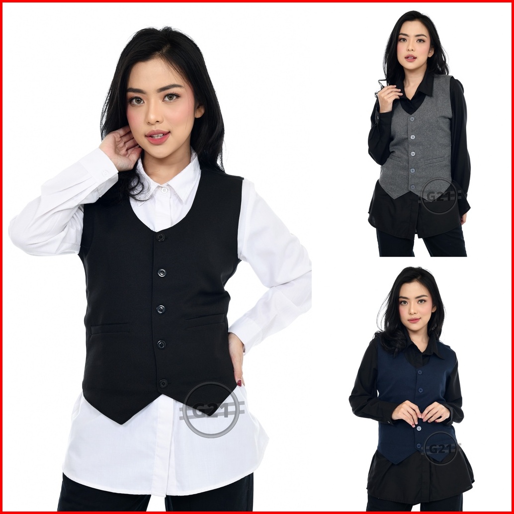 Rompi Vest Jas Wanita Formal Hitam Slimfit Kerja Kantor Premium High Quality Rompi Wanita Formal Rompi Vest Wanita Forma