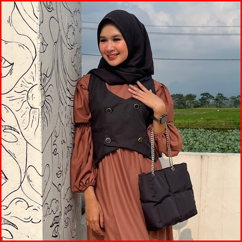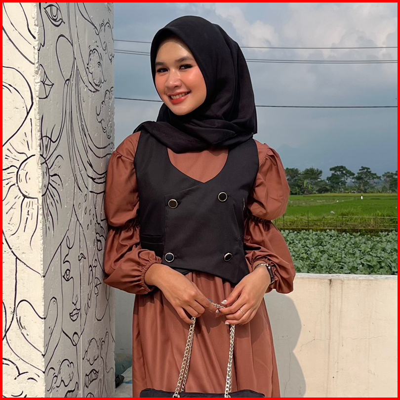 Black, Chocolate, Mint, Khaki, Satu Set dgn Dress, Hijau Tua
