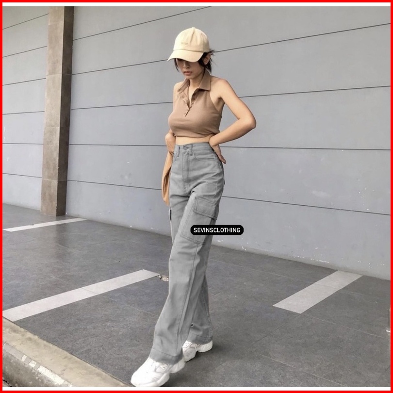 Sevins - Highwaist Loose Jeans Cargo Light Grey