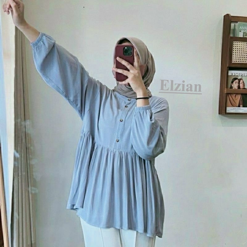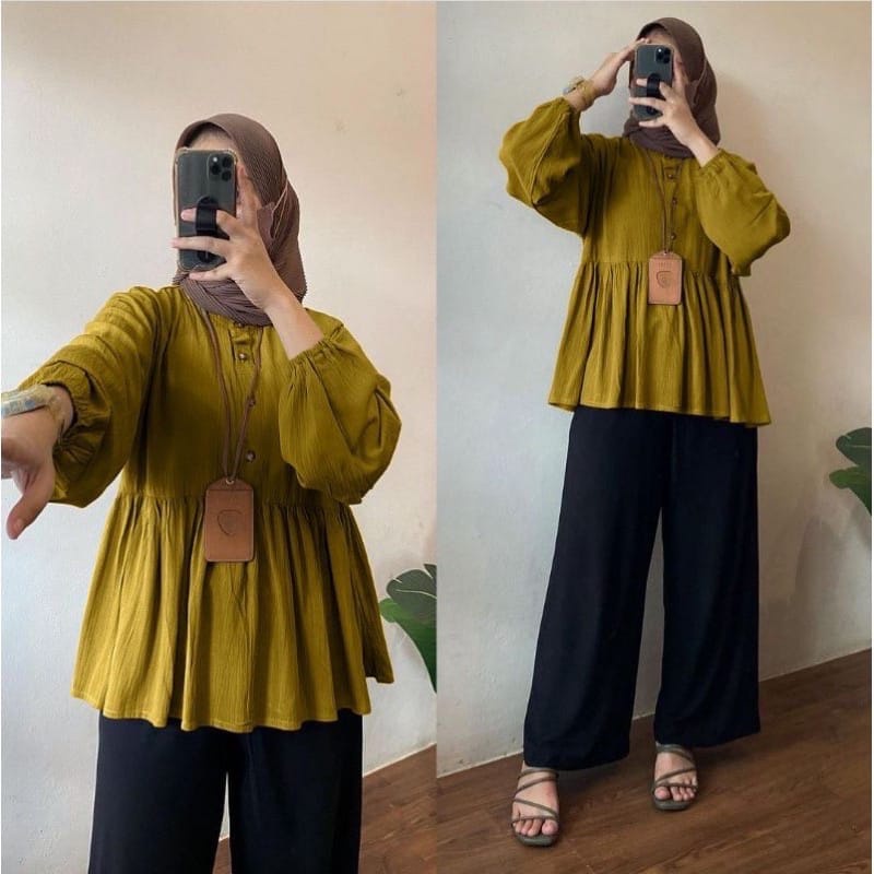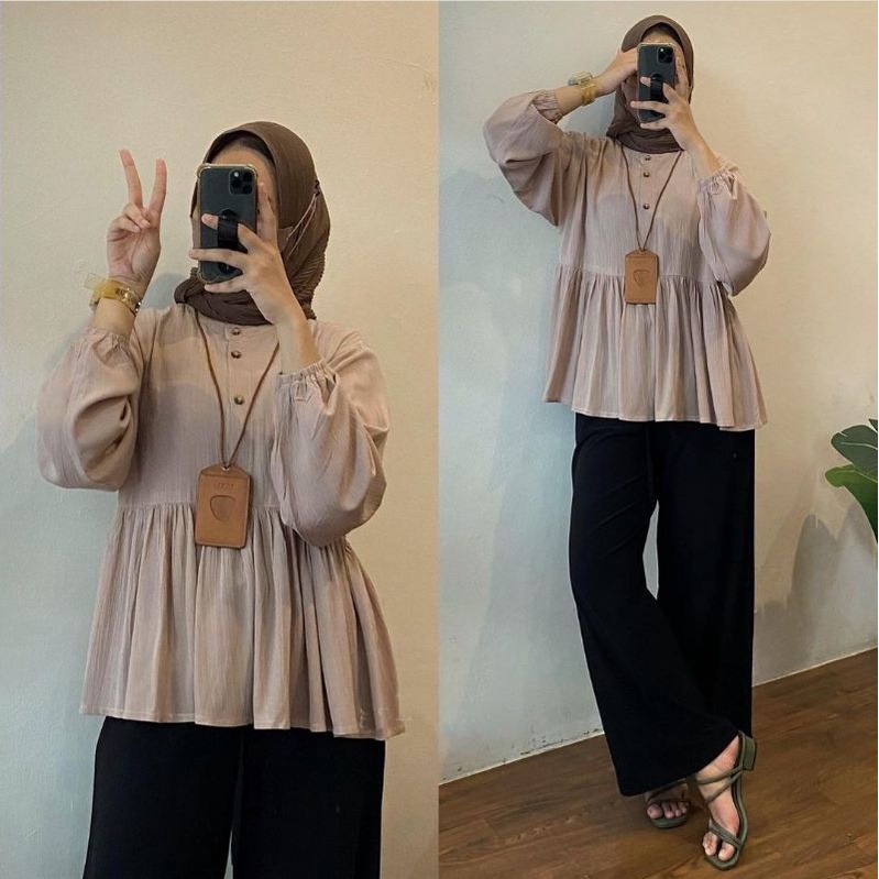 PROMO - RAISA BLOUSE CRINKLE PREMIUM // KEMEJA CRINKLE KERUT DEPAN LD 110 / BLOUSE KERAH SANGHAI / ATASAN WANITA TERBARU