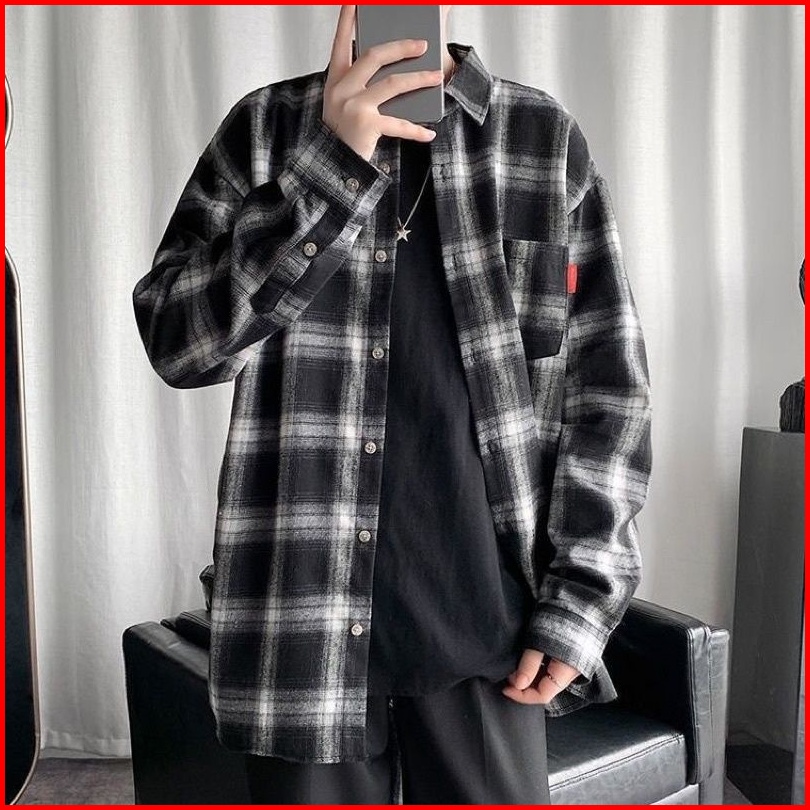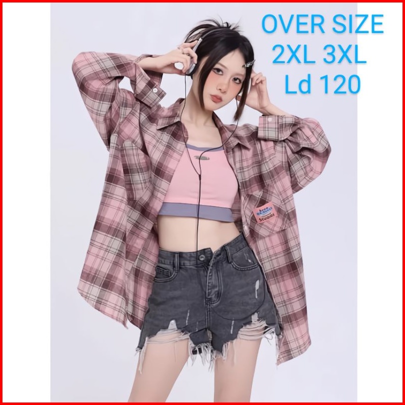 Kemeja Flanel Oversize Wanita Dan Pria Lengan Panjang Ld 120