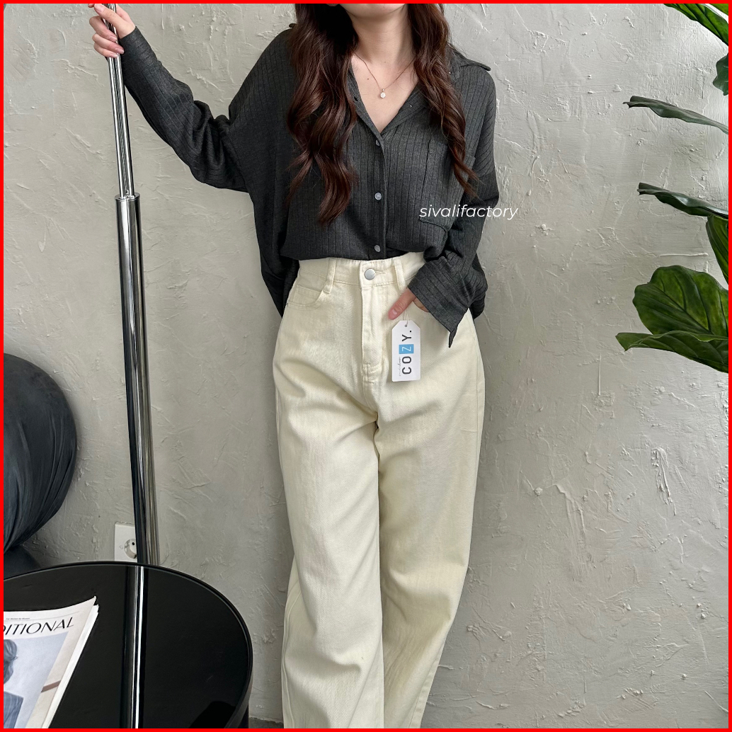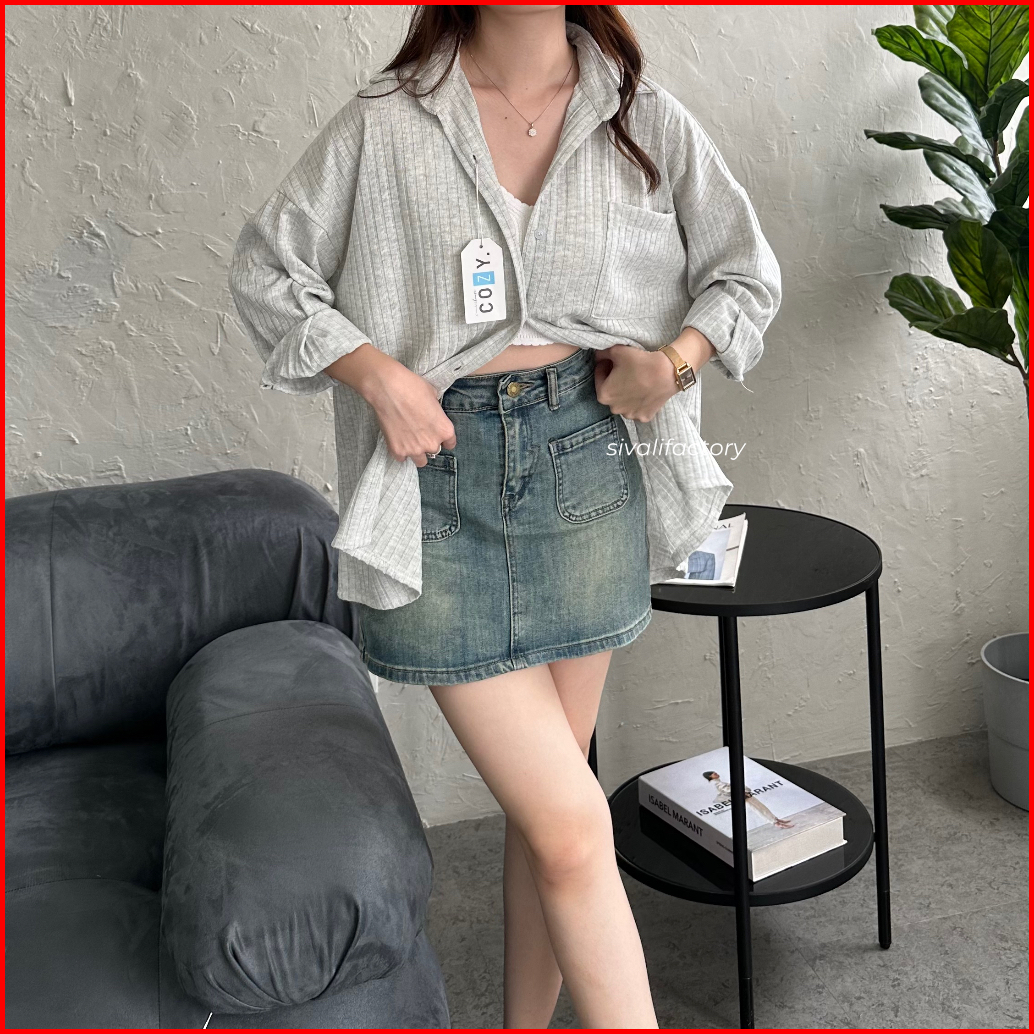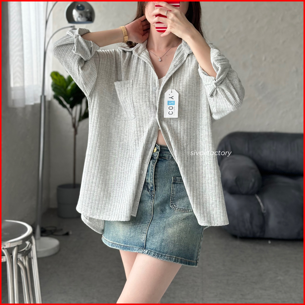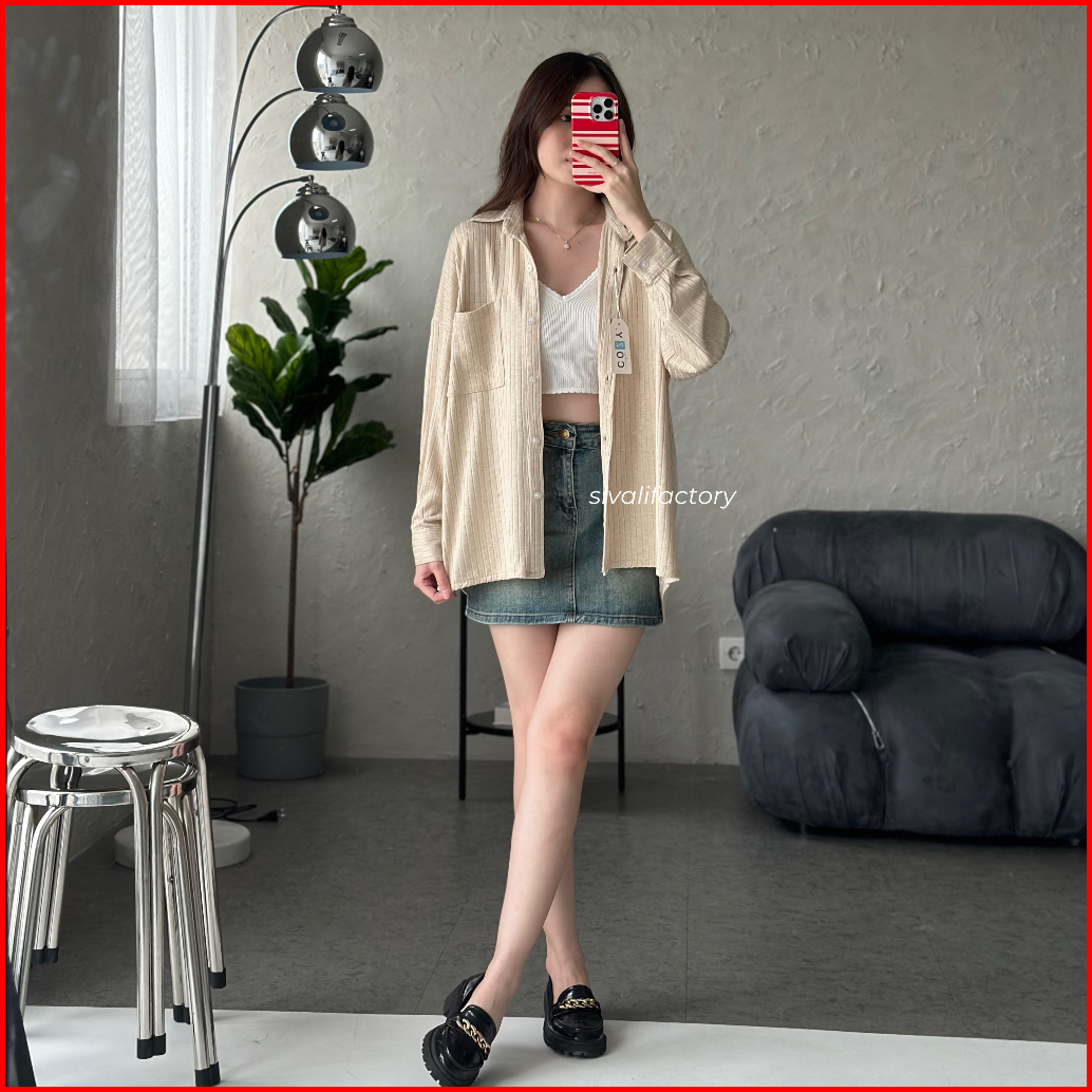 Sivali Cathy Shirt Kemeja Knit Oversized Wanita Lengan Panjang Atasan Kantor Casual Basic Loose Anti Kusut 997