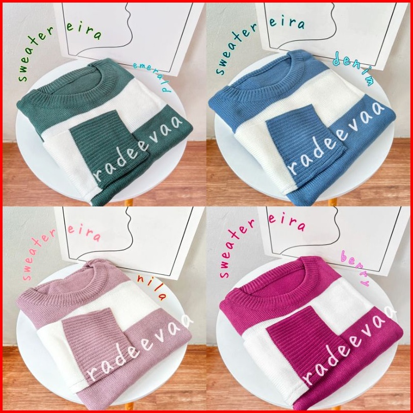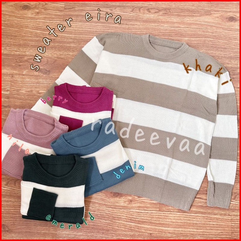 Sweater Eira Stripe Knit Oversize Atasan Rajut Motif Garis Tebal