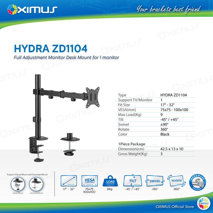 BRACKET MEJA LCD LED TV 1 Monitor 13" - 27" OXIMUS HYDRA ZD1104 Black Kabel - OXIMUS HYDRA ZD1104