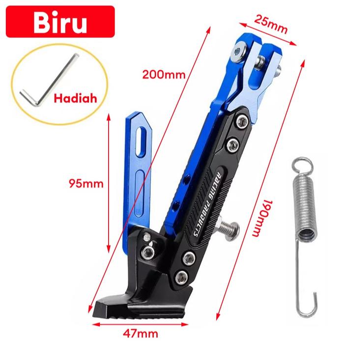 Standar Samping Motor Model Robot Full CNCTebal Bisa Untuk Semua Motor PNP Lengkap Bautdan Per Motorcycle - Biru