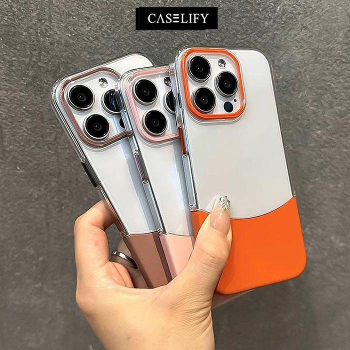 CASELIFY REMOVABLE DOUBLE COLOR COVER CASE COMPATIBLE WITH IPHONE 11 12 13 14 15 16 PRO PLUS MAX - Orange Ip 11