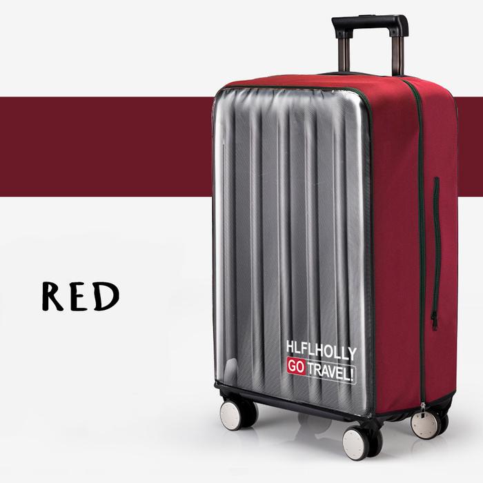 Sarung Cover Pelindung Koper Elastis Bening / Luggage Cover waterproof Transparan spandek - Red M ( 22 inch )