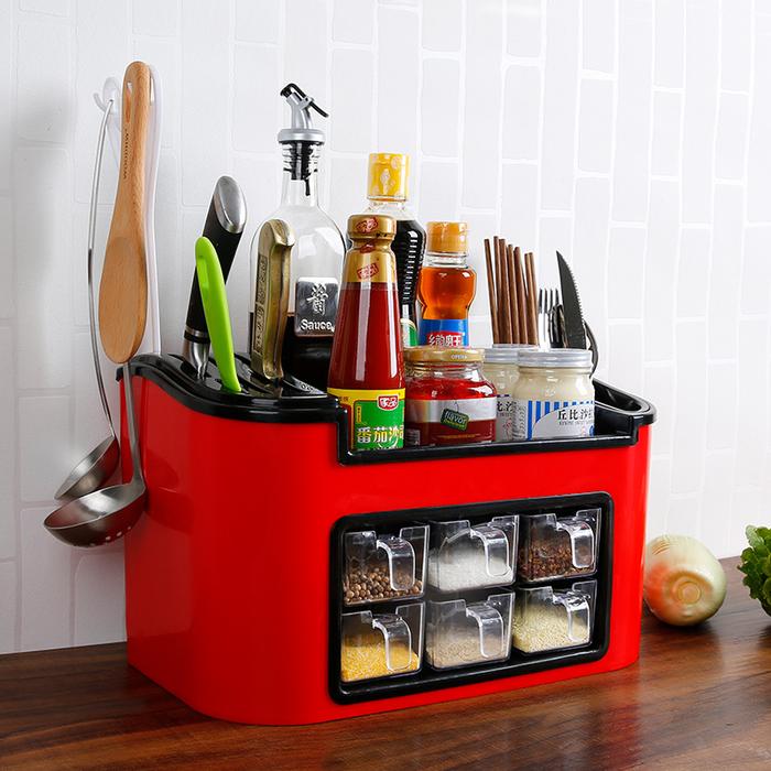 Rak Bumbu Dapur Plastik Rak Bumbu Masak Peralatan Dapur Termasuk 6 Tempat Bumbu Multifungsi - Merah Besar