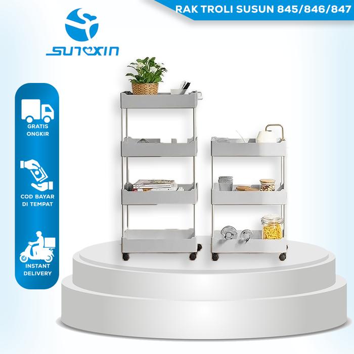 SUNXIN Rak Troli Susun Persegi panjang 845/846/847/Rak Dapur Plastik / Rak Kamar Mandi dengan Roda dan Pegangan - 847