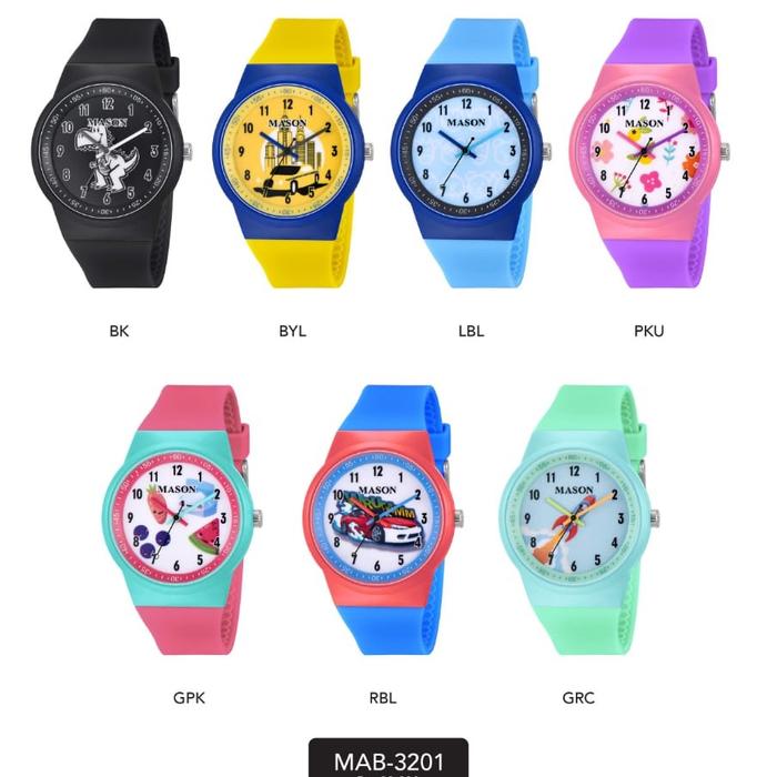 jam tangan anak laki laki perempuan mason mab 3201 original analog motif dial Fashion watches - kuning