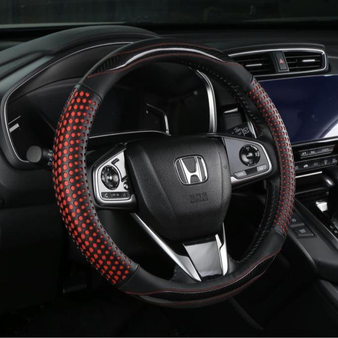 Sarung Stir Cover Setir Mobil Motif Polkadot karbon Kulit Premium - Dot Black