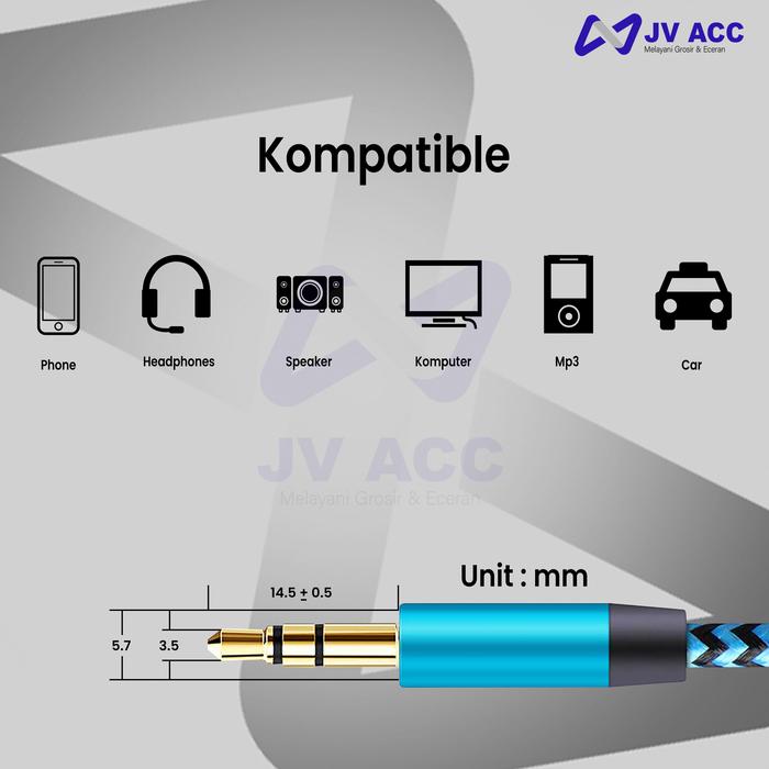 HARGA MIRING ! NANVAN KABEL AUDIO AUX METAL 1X1 JACK 3.5MM DARI HP KE SPEAKER / MOBIL PREMIUM QUALITY - BLACK MURAH